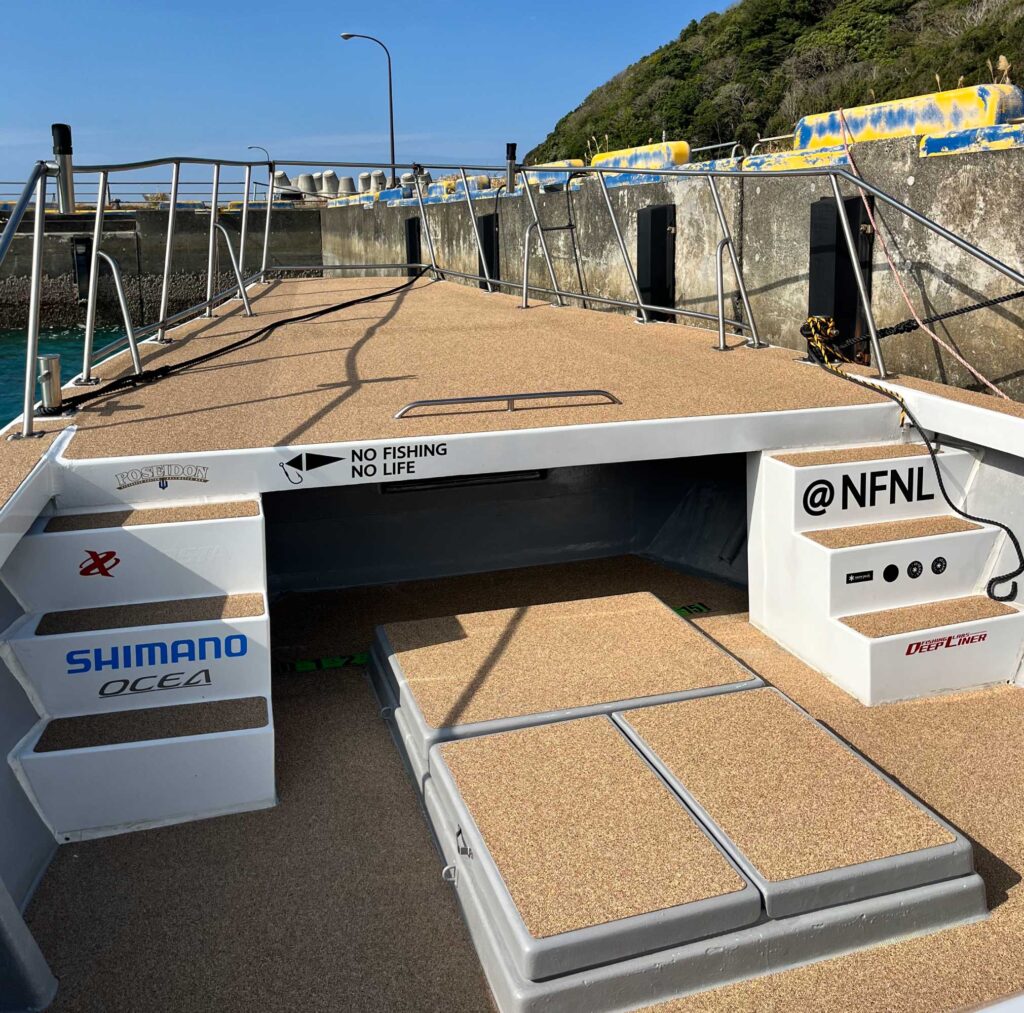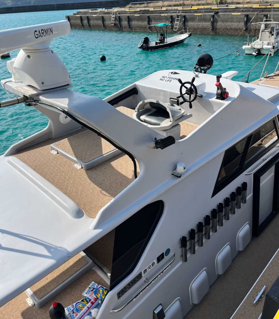 ●SSボート 57f (長さ17.5m、幅3.5m) ルアーフィッシング専用艇 ●乗船最大12名 最大釣定員10名 ●コマツエンジン700馬力 ●ロッドホルダー40箇所 ●沿海区域・・・トカラ列島全域、奄美大島全域、周辺の無人島への案内が可能。各海岸から約20海里~30海里以内の水域まで遠征可能。